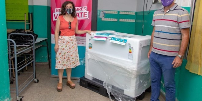 Desde el Gobierno Provincial arribaron a la Escuela Primaria Nº 61 de Bernal Oeste (Calle 190 Nº 988) y a la Nº 41 de Bernal Este (Caseros 1586), dos de las primeras instituciones educativas asignadas, elementos como freezers, gazebos, termómetros, sistema de monitoreo de temperatura a distancia, mesas, sillas y cartelería para comenzar a organizar la jornada de vacunación que iniciará próximamente, y a la brevedad continuarán con el equipamiento en las demás escuelas.