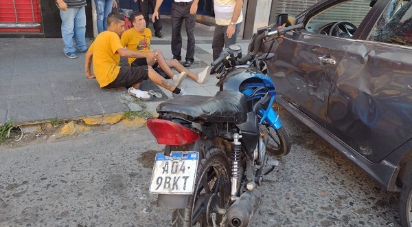 Un auto y una moto chocaron en Yrigoyen y 9 de Julio, en el centro de Quilmes.