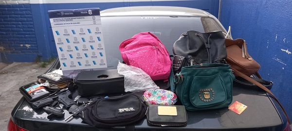 Tras realizar una requisa, se incautó del interior del vehículo distintas pertenencias de mujeres como carteras, riñonera, mochilas y documentos de identidad, entre otros. Al igual que un revolver calibre 22 largo de color gris. También se constató que dicho auto presentaba un pedido activo de captura por el delito de robo automotor.