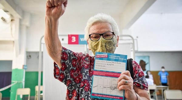 “Para mí la vacuna significa la vida”, afirmó Blanca Nuñez, vecina de Bernal de 80 años, que padece EPOC (enfermedad pulmonar obstructiva crónica) y que hoy recibió la dosis correspondiente en el marco de la nueva etapa de la campaña de vacunación contra el coronavirus que se inició en el distrito para los adultos mayores de 70 años.
