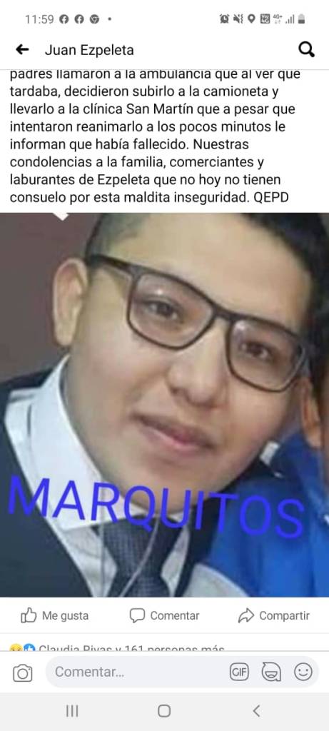 Un joven de 18 años fue asesinado anoche de al menos tres balazos, mientras que su padre resultó herido en medio de un intento de robo con modalidad entradera ocurrido frente a una casa Ezpeleta.