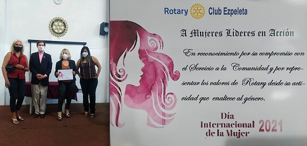 En el marco del Día Internacional de la Mujer, el Rotary Club de Ezpeleta extendió un destacado agradecimiento por la labor realizada por la asociación civil Mujeres Líderes en Acción en el marco de la pandemia por el coronavirus.