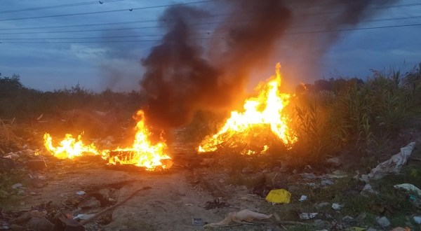 Bomberos voluntarios de Quilmes acudieorn al lugar donde se produjo el incendio de residuos y neumáticos.