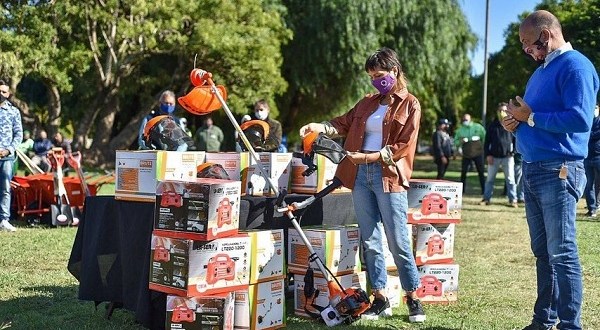 La intendenta de Quilmes, Mayra Mendoza, dispuso la entrega de nuevas máquinas y herramientas para las 12 Bases Operativas del Municipio que trabajan diariamente en la limpieza y mantenimiento de los barrios.