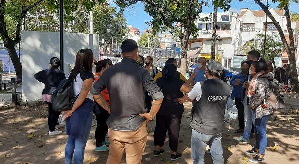 Trabajadores de la Economía Popular se instalaron en la plazoleta de Carlos Pellegrini entre Gran Canaria y Canal de Beagle tras obtener una autorización del municipio.
