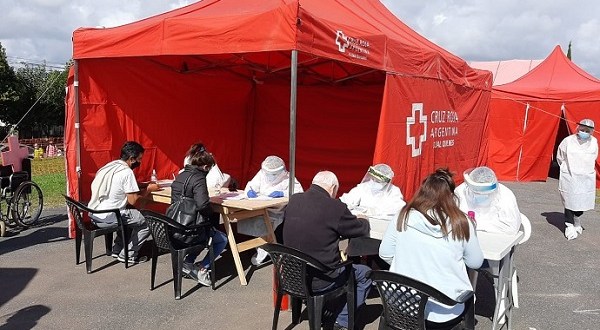 La Cruz Roja Argentina filial Quilmes instaló una posta de testeo rápido para la detección temprana del virus que produce la enfermedad del COVID-19 en el Parque de la Ciudad, de Vicente López y Smith.