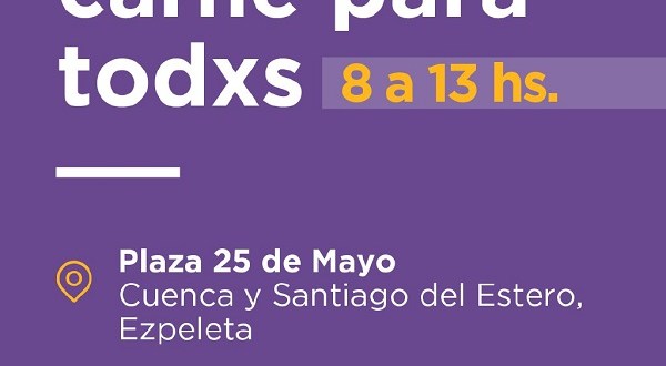 El martes 6 de abril, Carne Para Todos estará en la Plaza 25 de Mayo, en Cuenca y Santiago del Estero, en Ezpeleta, y el lunes 12 de abril; en la Plaza La Matera, sobre la calle 818 y 889, del barrio La Matera, en Quilmes Oeste.