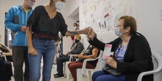 Una de las quilmeñas que recibió su primera dosis, comentó: “Soy María Elena Arrieta, de Ezpeleta, y me vine a vacunar hoy porque hemos tenido muchos casos en la familia, muchas pérdidas, y vacunándonos pienso que vamos a tener una pequeña dosis de seguridad, de que no nos vayamos a enfermar seriamente. Y a la edad mía, 74 años, siendo hipertensa, es una posibilidad de que se pase más rápido”.