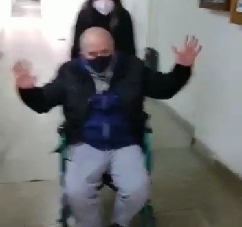 El director del hospital, Matías Gallastegui, publicó un video en el que se puede observar a Rubén, trasladado en silla de ruedas por los pasillos del centro de salud y aplaudido por todos.