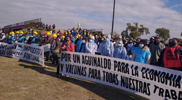 La Unión de Trabajadores de la Economía Popular visibilizó desde el Triángulo de Bernal una serie de reclamos que vienen realizando hace varios meses, como ser incorporados al calendario de vacunación contra el coronavirus y mayor cantidad de alimentos para comedores y merenderos.