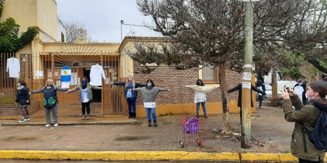 La comunidad educativa de la escuela 8, ubicada en Ayolas y Urrestarazu, en Quilmes Oeste realizó un abrazo simbólico para reclamar las obras necesarias para poder contar con suministro de gas en el edificio.