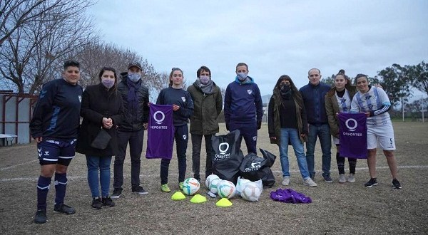 Al finalizar el encuentro, ambos funcionarios hicieron entrega de bolsones con material deportivo de entrenamiento, para ambos planteles, en el marco de un programa de apoyo para el desarrollo del fútbol femenino en la ciudad.