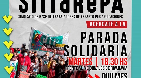 Representantes del SiTraRepA (Sindicato de Base de Trabajadores de Reparto por Aplicación) realizarán una jornada de afiliación en la peatonal de Quilmes hoy a partir de las 18.3 invitando a los repartidores a impulsarlo en la zona. Se trata de un sindicato recientemente conformado que viene construyéndose desde las bases y que ya cuenta con miles de afiliaciones y pelea por el reconocimiento ante el Ministerio de Trabajo.
