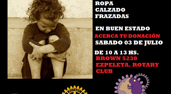 Este sábado de 10 a 13 se reciben ropa, calzado, frazadas e indumentaria en Brown 5238, Rotary Club de Ezpeleta que serán donadas a decenas de personas que han sido damnificada por el coronavirus y la crisis económica que azota al país sin distinción de credo, cultura ni religión.