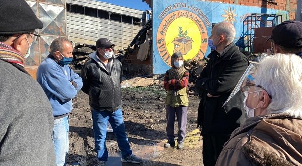El Cardenal Mario Aurelio Poli, de la Arquidiócesis de Buenos Aires, se acercó a la Cooperativa de Cartoneros de Villa Itatí junto con el Obispo de Quilmes, Carlos José Tissera, el Obispo Auxiliar, Marcelo (Maxi) Margni, y el Obispo Emérito de Río Gallegos, Juan Carlos Romanín, que reside en la comunidad salesiana de Don Bosco, para acompañar a los trabajadores y familias que sufrieron el incendio el pasado miércoles 30 de junio.
