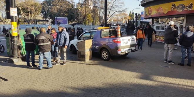La Agencia de Fiscalización y Control Comunal realizó un operativo para evitar que los vendedores ambulantes se instalen sobre Rivadavia e Yrigoyen.