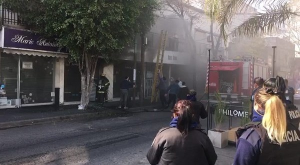 Bomberos voluntarios de Quilmes controlaron un incendio que se produjo este mediodía en el local de carteras Juanita Jo, ubicado en Brown entre Videla y Alsina, en pleno centro de la ciudad.