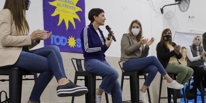 Mayra compartió el escenario junto a María Eva Rey, Eva Berezan y Romina Grossi (todas precandidatas a Concejalas) y a la precandidata a Diputada Provincial, Patricia Cubría.