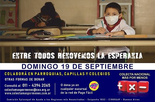 El fin de semana del sábado 18 y domingo 19 de septiembre se realizará la Colecta Nacional “Más por menos” en su 52° edición, con el lema “Entre todos renovemos la esperanza”.