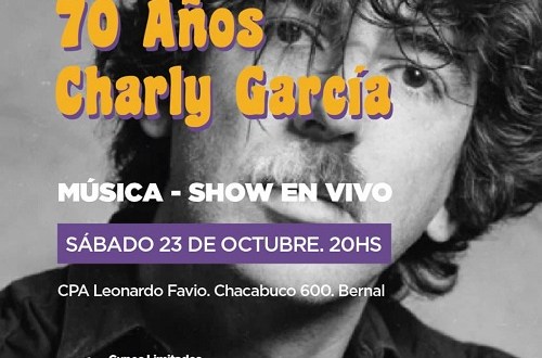 El Municipio de Quilmes invita a la comunidad al homenaje a Charly García, este sábado 23 de octubre a las 20, en el CPA (Centro de Producción Audiovisual) Leonardo Favio, ubicado en Chacabuco 600, en Bernal, con entrada libre y por orden de llegada (hay cupos limitados).