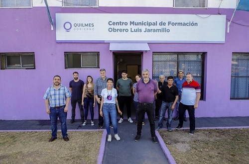 “Sentimos orgullo por lograr reabrir el Centro Municipal de Formación Obrero Luis Jaramillo, este espacio lo hemos puesto en valor junto al movimiento de trabajadores y ya cuenta con aulas para talleres de costura, gastronomía, informática y peluquería. Este lugar muy pronto podrá ser utilizado para que vecinos y vecinas de Quilmes puedan capacitarse y contar con un oficio para su inserción al mundo laboral. Sí a la capacitación, sí a la inclusión, sí al trabajo”, manifestó Mayra, quien estuvo acompañada por el secretario de Desarrollo Económico Sustentable, Mario Lozano; el subsecretario de Producción y Empleo, Paul O’Shanghnessy; el presidente del bloque de concejales y concejalas del Frente de Todos (FDT) Quilmes, Ariel Burtoli; la directora de Formación e Intermediación Laboral, Anahí Monzón; y uno de los coordinadores del lugar, Sergio Centurión.