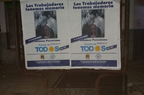 Con una pegatina de afiches en Quilmes, Berazategui y Florencio Varela, las 62 Organizaciones Peronistas Regional salió «a bancar el proyecto del Frente de Todxs, que es el modelo de la Producción y el Empleo, algo que tanto necesita nuestra Patria. Y no el modelo de la especulación financiera, de quitas de derechos laborales, como plantea todo el arco opositor».