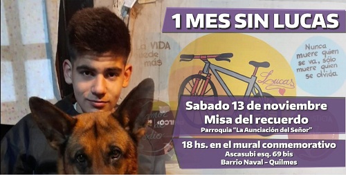 A un mes de su asesinato, se realizará una misa por Lucas Cancino, el joven de 17 años que fue apuñalado cuando salía de la casa de sus abuelos, en el barrio Naval, rumbo a la escuela.