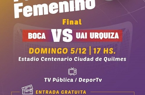 La final del Clausura Femenino de fútbol de Primera División de AFA, que enfrentará a Boca Juniors y la UAI Urquiza, se jugará en el Estadio Centenario Ciudad de Quilmes, del Quilmes Atlético Club, en la avenida Vicente López y Esquiú, mañana desde las 17.La entrada será gratuita dando la posibilidad de donar un alimento no perecedero a los puntos solidarios de la cuidad.