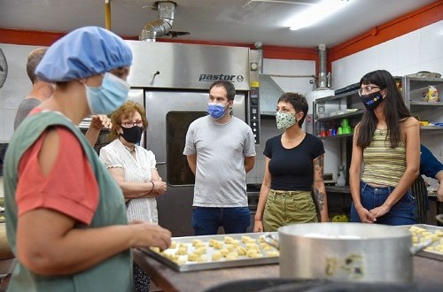 La intendenta de Quilmes, Mayra Mendoza, visitó la sede de la Asociación de Padres de Hijos Especiales (APHE), en Ciudadela 1153, en Bernal, entidad que accedió a un subsidio por parte del Municipio, con el que compraron insumos y equipamiento de cocina para fortalecer su unidad productiva «Sabores Especiales, panadería inclusiva».