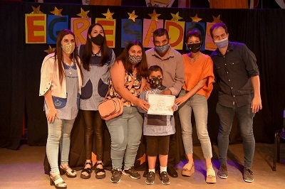 “Quiero felicitarlos y felicitarlas por todo el trabajo que hicieron junto con sus maestras y sus familias, en tiempos muy difíciles, con una pandemia que fue una pesadilla, pero que seguramente y gracias a la vacunación podremos dar vuelta la página”, aseguró Mayra en la apertura del evento.
