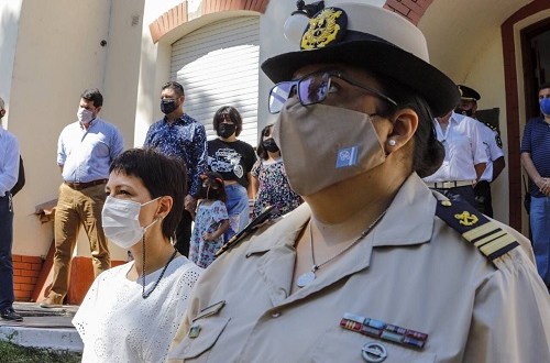 La intendenta de Quilmes, Mayra Mendoza, participó en la mañana del lunes del acto protocolar del Cambio de Jefatura, de la sede local de la Prefectura Naval Argentina, sita en Otamendi 1654, en La Ribera, en la que asumió el cargo la prefecta Magalí Prudencio.