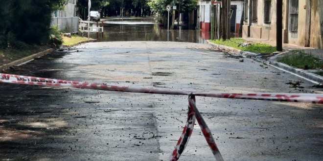 La calle Primera Junta está cortada a la altura de las vias y hasta la calle Sudamérica por la gran acumulación de agua.