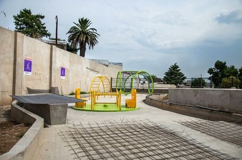 Los trabajos realizados tuvieron que ver con la ejecución de bases de los juegos infantiles, así como también con trabajos sobre el muro medianero. De esta manera, los juegos de la plaza blanda se encuentran ya colocados, y solo resta terminar el guarda ganado que conduce el agua de lluvia, así como la colocación del piso antigolpes.