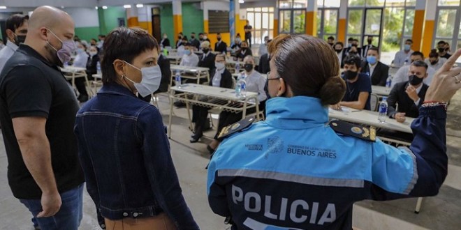 La intendenta Mayra Mendoza estuvo en la evaluación y destacó la vocación de servicio y compromiso de los aspirantes. “esta instancia, articulada con el Ministerio de Seguridad de la Provincia de Buenos Aires, tiene como objetivo seguir incorporando efectivos a la policía bonaerense que cumple funciones en nuestra ciudad”.