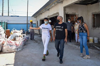 La intendenta de Quilmes, Mayra Mendoza, recorrió hoy las tareas de construcción de una sala maternal, que incluyen baños y una oficina, en la Escuela Secundaria Nº 16 “Fortaleza de los Kilmes”, ubicada en avenida Calchaquí 840, Quilmes Oeste.