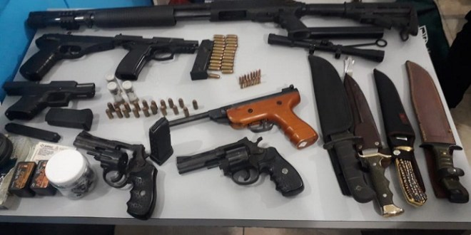 Pero al inspeccionar la vivienda, los uniformados hallaron una enorme cantidad de armas de fuego, como pistolas, revólveres, escopetas, silenciadores, miras telescópicas, silenciadores, municiones de guerra, balas y balines; y también armas blancas, como cuchillos de todo tipo y tamaño de hojas. También se encontró documentación de algunas de las armas y permisos de tenencia.