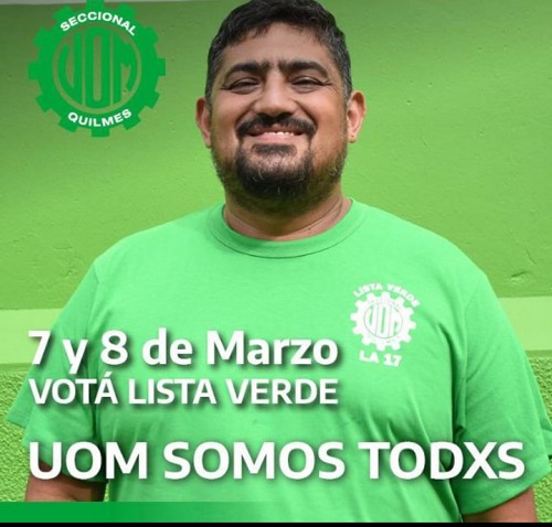 Adrián Perez fue electo secretario general de la Unión Obrera Metalúrgica regional Quilmes, Varela y Berazategui.