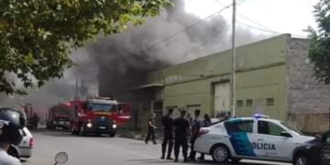 Bomberos Voluntarios de Quilmes y Bernal trabajaron en el lugar para evitar que las llamas se propaguen dentro del galpón.