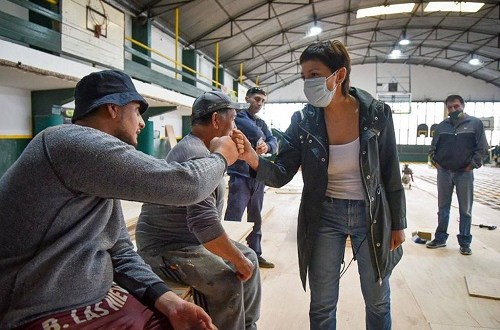 La intendenta de Quilmes, Mayra Mendoza, recorrió durante la mañana del viernes las obras de colocación del piso de parquet en el gimnasio del primer piso que se están realizando en el Club Social Deportivo y Cultural Moreno, ubicado sobre la calle Moreno 72, en el barrio Villa Las Rosas, de Quilmes, otra de las instituciones del distrito que fue beneficiada con el Programa de Fortalecimiento a Clubes de Barrio y Entidades de Bien Público y el Programa Clubes en Obra.