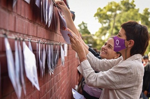 La Jefa comunal descubrió un mural con fotos de los desaparecidos y desaparecidas de Quilmes, realizando un recorrido junto a los estudiantes y funcionarios presentes.