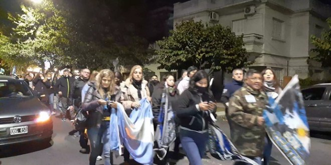Pasadas las 23 se inició la marcha de antorchas y banderas por la avenida Vicente López hasta San Martín y Zapiola, donde se emplaza el Monumento al Soldado de Malvinas