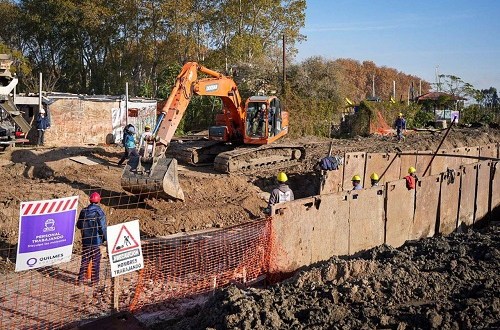 Por último agregó que además del conducto principal sobre Otamendi hay otros secundarios hacia adentro del barrio sobre la calle Yoldi “para que el agua cuando tengamos fuertes lluvias pueda escurrir por este conducto y desembocar en el Río de la Plata, y en el momento de sudestada vamos a poder accionar esas compuertas para que el río no ingrese adentro del barrio”.