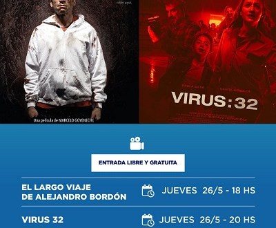Este jueves 26 de mayo, se presentarán dos nuevos estrenos: el film “Virus: 32” y la docuficción “El largo viaje de Alejandro Bordón”. Las entradas se retiran de manera gratuita el mismo día de la función en la sede del espacio que funciona en el Teatro Municipal, de Mitre 721.