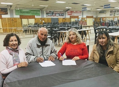 La presidenta de la Cooperadora del Hospital de Quilmes, Sandra Torres, junto a la prosecretaria Sabrina Morguen, el Presidente del Centro Tradicionalista Fortín Quilmes Armando Pérez y la secretaria Liliana Albornoz, firmaron un convenio Marco de Colaboración.