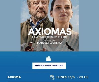 Por último, el lunes 13 a las 20, y el miércoles 15 a la misma hora, será la oportunidad de la presentación de la película “Axiomas”, con la dirección de Marcela Luchetta, y que tiene como protagonistas a Luz Cipriota, Jorge Marrale y César Bordón.