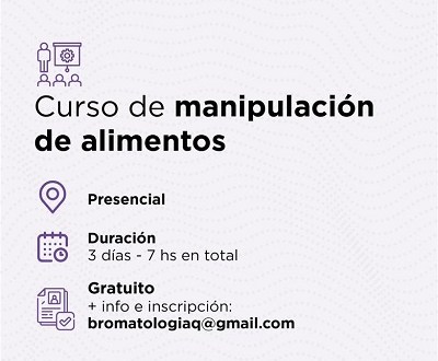 Para mayor información, podrán enviar un mail a bromatologiaq@gmail.com donde recibirán asesoramiento para la inscripción al curso.