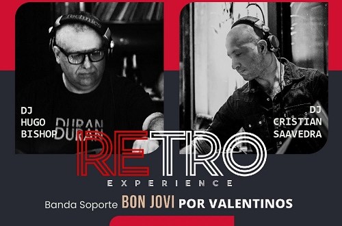 Una experiencia que pasará por todos los géneros musicales, hits y clásicos de los 70´,80´,90´y 2000. La noche estará musicalizada por los DJs Hugo Bishop y Cristian Saavedra, dos referentes de la escena Retro Disco. Y si sos fanático de Bon Jovi, no te pierdas la super presentación de Valentinos, tocando en vivo los éxitos de la clásica banda estadounidense de los años ochentas, que marcaron una época inolvidable del Rock internacional. Durante la fiesta también podrás degustar de un Menú Retro, especialmente diseñado para que pases una noche plagada de recuerdos, amigos y excelente música.