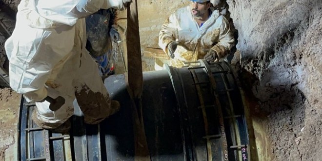 AySA finalizó la reparación de una importante cañería distribuidora de agua potable de 1200mm de diámetro sobre la calle Almirante Brown, entre 9 de julio y Videla en la localidad de Quilmes.