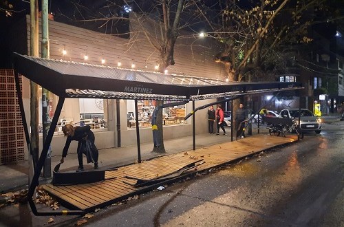 Por el horario y el clima, la dársena donde habitualmente se colocan mesas y sillas, estaba vacía por lo que sólo se registraron daños materiales