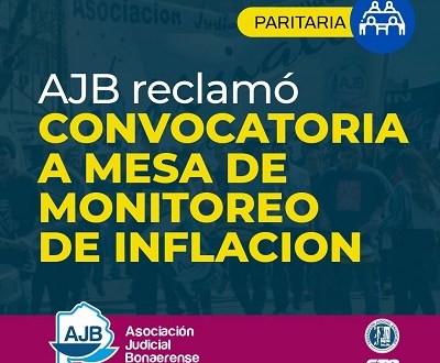 La Asociación Judicial Bonaerense (AJB) realizó una presentación formal ante el Ministerio de Trabajo solicitando la urgente convocatoria a mesa de Monitoreo de Inflación, en el marco de la cláusula acordada al respecto en la paritaria vigente.